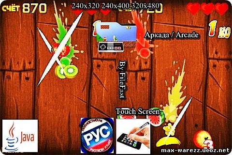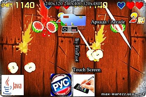 Наиболее продвинутый вариант активной java-аркады. Разрезай мечом подлетающие фрукты, но избегай бомб. Жанр/Genre: Аркада / Arcade Категория/Category: Java игры/Java games Размер экрана/Screen size: 240x320 240x400 320x480 Разработчик/Developer: Платформа/Platform: Java Формат файла/File format: .jar Вид устройства/Appearance of the device: для телефонов/for phones Язык интерфейса/Interface language: русский (RU) английский (ENG) Размер/Size: 1,70 Mb Touch Screen/Stylus: есть/there are Статус игры/The status of the game: бесплатная/free Подготовил/Prepared by: FileFast